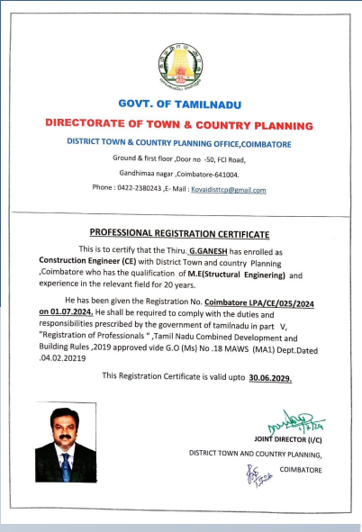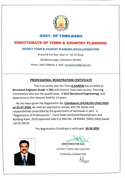 Er . G . Ganesh M.E (Struct) ., M.Sc (REV) .,